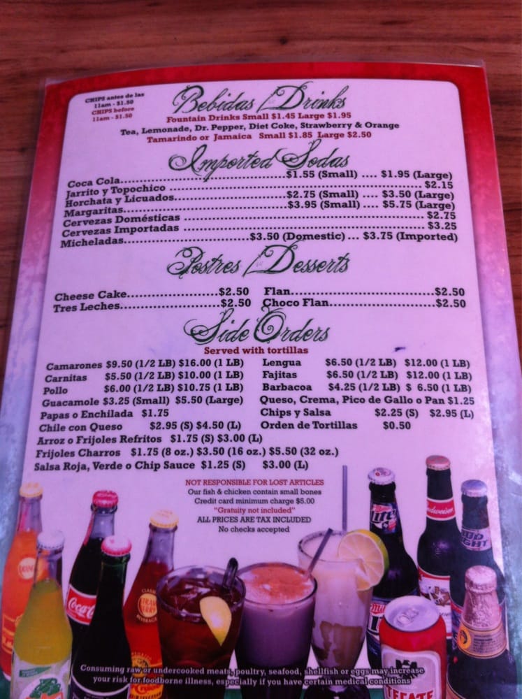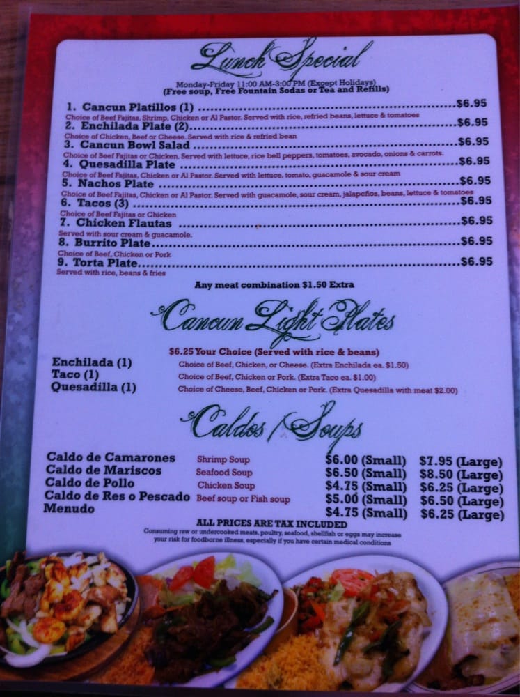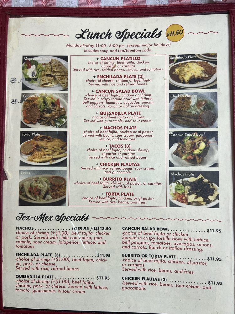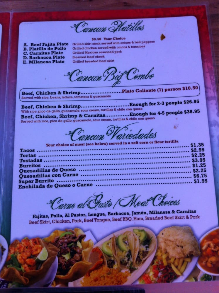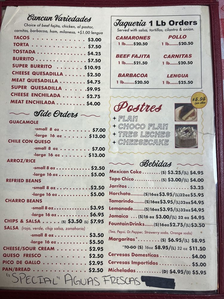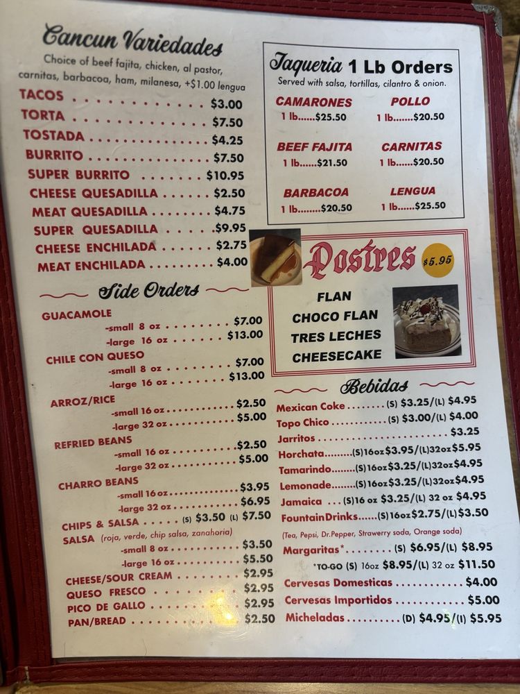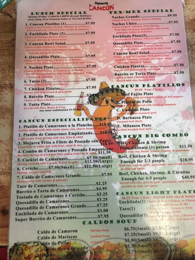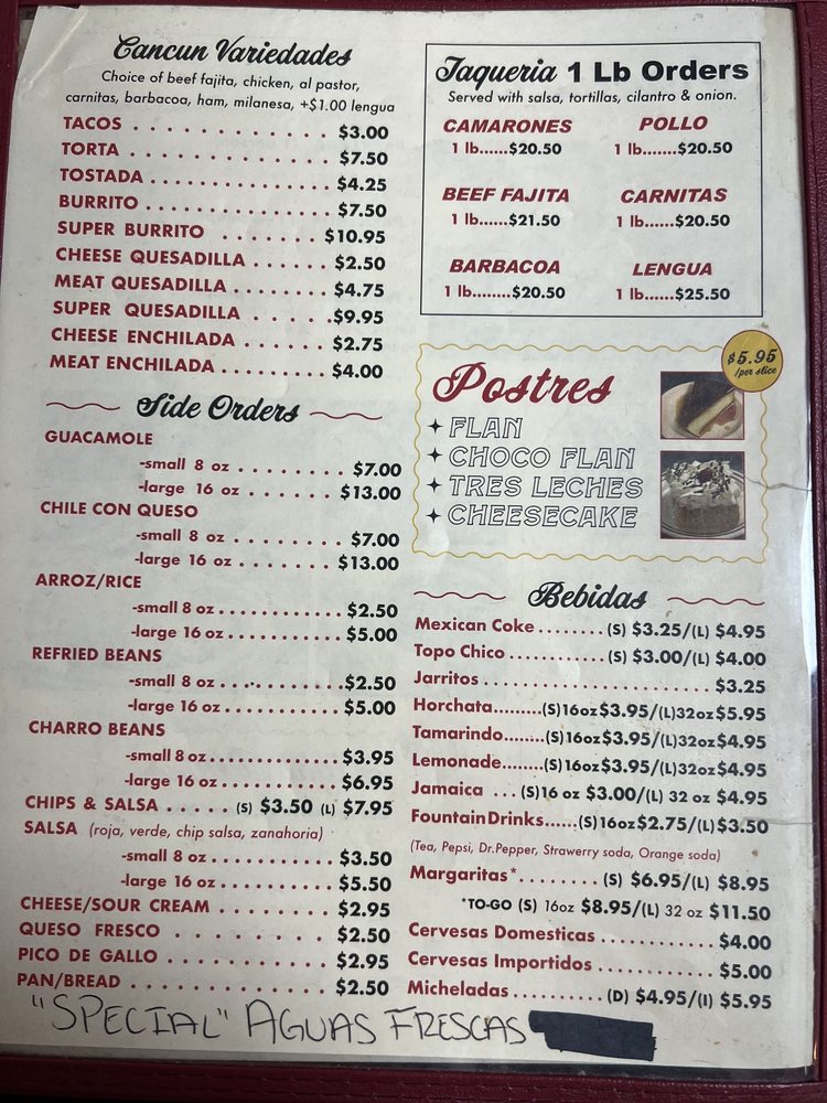 Taqueria Cancun TX Menu